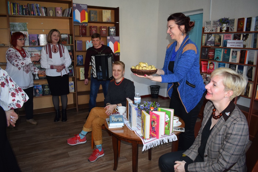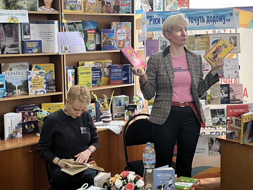 У Лубнах зустріч тривала дві з лишком години, велика бібліотечна зала ледь уміщала усіх охочих (стільці довелося постійно доносити з інших кімнат). Такий ажіотаж можна зрозуміти: гостьових авторок тут добре знають, написані та перекладені ними книжки були заздалегідь акуратно викладені на двох столах й етажерці обіч. Я навіть порахувала: на Ольгу й Анну у сумі припадає 39 книг - 12 авторських і 27 перекладених.