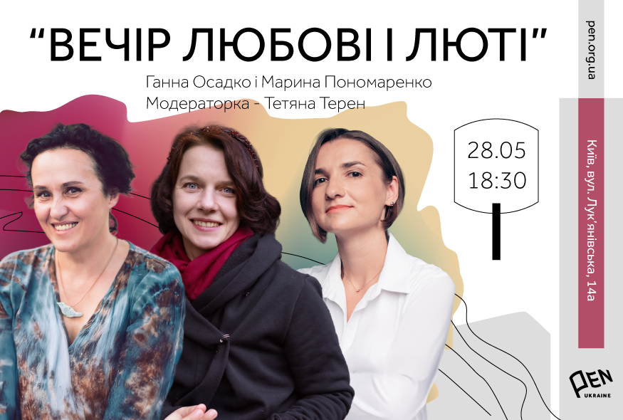 28 травня (середа) о 18:30 у просторі PEN Ukraine відбудеться читання Ганни Осадко і Марини Пономаренко "Вечір любові та люті".
