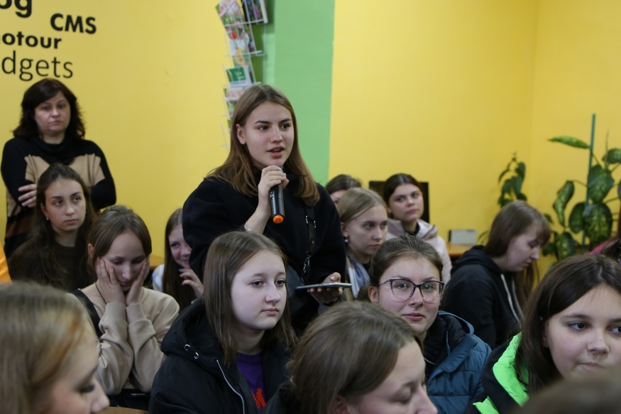 В Олександрійській бібліотеці для юнацтва на зустріч із письменницями прийшло більше ніж сто читачів, здебільшого старшокласників. Авторки розповідали їм про свій письменницький шлях, про книжки, а також як це - бути українськими письменницями.