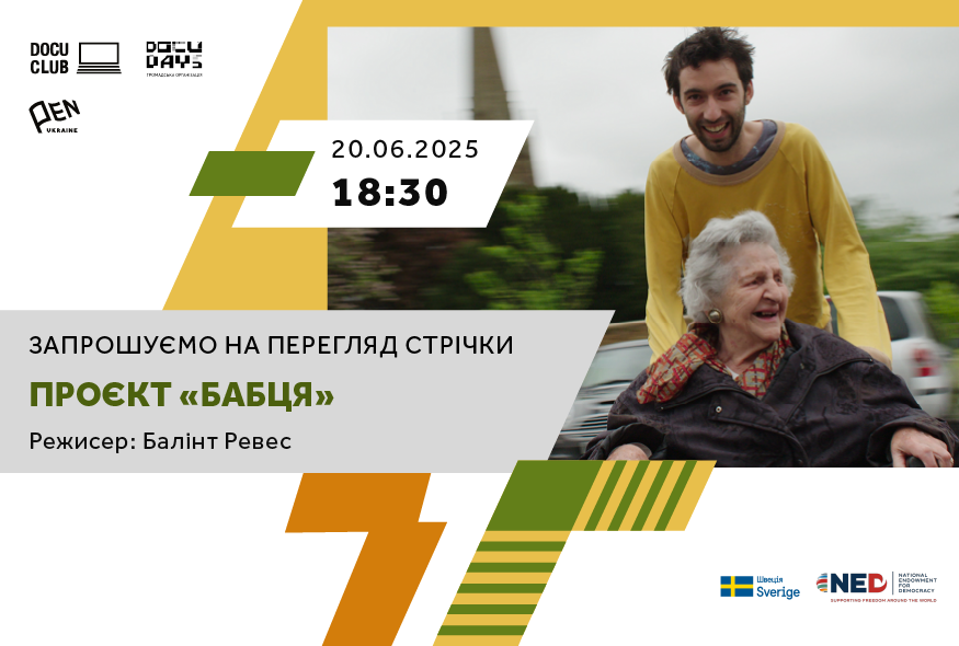20 червня (п’ятниця) о 18:30 у просторі PEN Ukraine в рамках Кіноклубу Docudays UA при Українському ПЕН відбудеться показ документальної стрічки "Проєкт "Бабця"".
