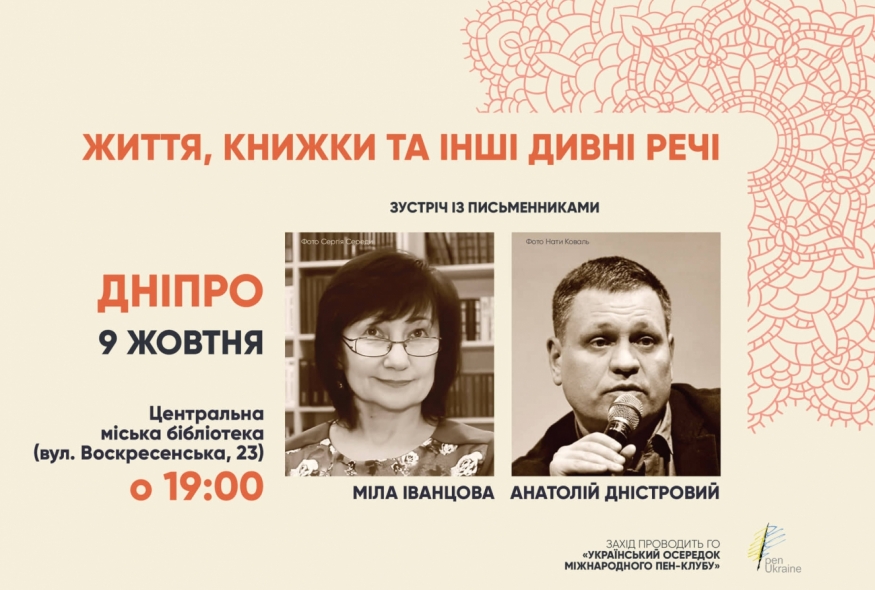 Український ПЕН запрошує дніпрян на зустріч із письменниками Мілою Іванцовою та Анатолієм Дністровим.