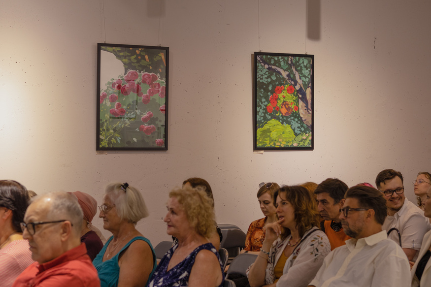 Художню виставку 17 серпня відкрила розмова про роль мистецтва під час війни, мотивацію творити. У дискусії, крім авторки, взяли участь письменник та художник Анатолій Дністровий, художниця Олена Придувалова та письменник Андрій Бондар. Модерувала письменниця, журналістка, продюсерка "Радіо Культура" Ірина Славінська.