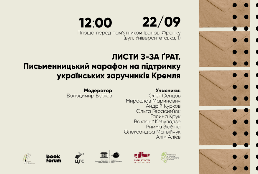 Акція "Листи з-за ґрат" розпочнеться 22 вересня (неділя) о 12.00 на площі Ринок перед входом до Ратуші.