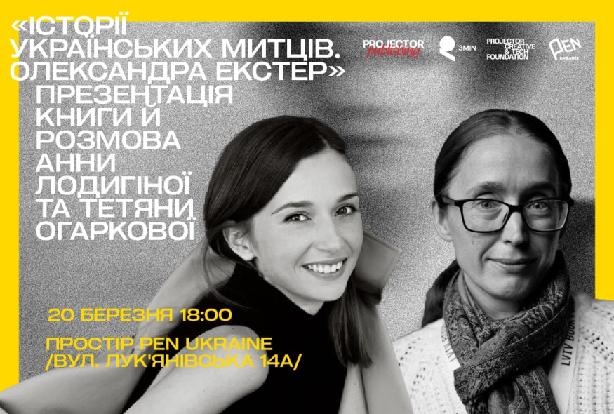 20 березня (четвер) о 18:00 у київському просторі PEN Ukraine відбудеться презентація першої книги із серії "Історії українських митців" видавництва Projector Publishing, присвяченої Олександрі Екстер