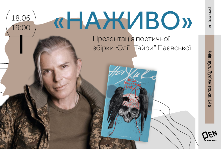 18 червня (середа) о 19:00 у просторі PEN Ukraine відбудеться презентація збірки Юлії "Тайри" Паєвської "Наживо"