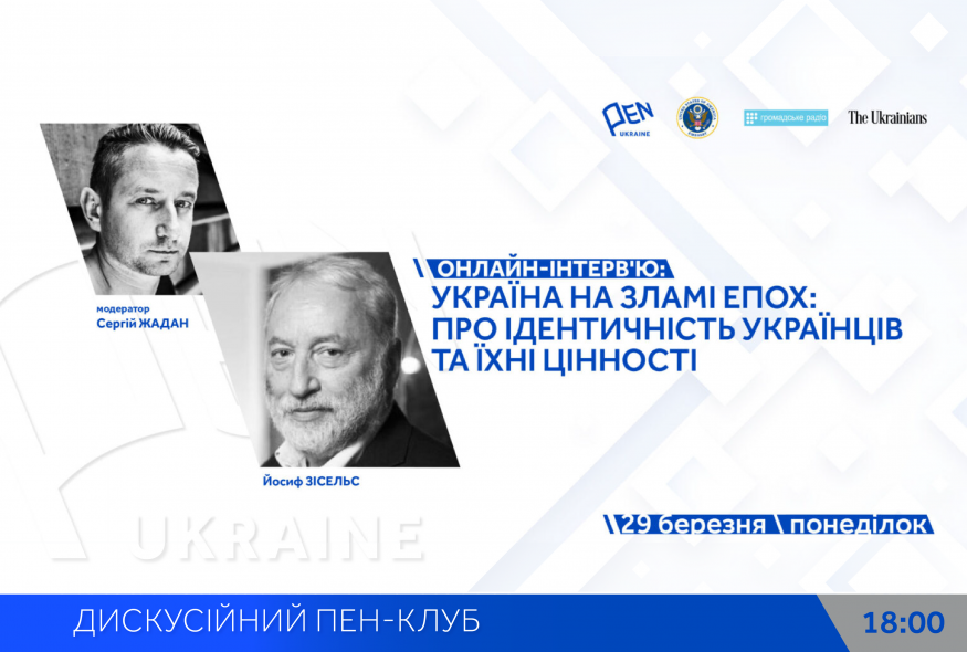 29 березня о 18:00 відбудеться онлайн-інтерв’ю з Йосифом Зісельсом – громадським діячем, співпрезидентом Асоціації єврейських організацій та общин (Ваад) України, головою Генеральної ради Євроазіатського єврейського конгресу, виконавчим віце-президентом Конгресу національних громад України. Розмову вестиме письменник Сергій Жадан. Тема: "Україна на зламі епох: Про ідентичність українців та їхні цінності".