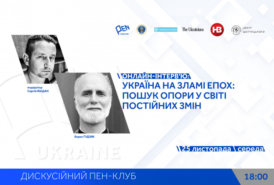 25 листопада о 18:00 відбудеться онлайн-інтерв’ю з Борисом Ґудзяком - президентом Українського Католицького Університету у Львові, архиєпископом і митрополитом Філадельфійським УГКЦ у США. Розмову вестиме письменник Сергій Жадан. Тема: "Україна на зламі епох: Пошук опори у світі постійних змін".