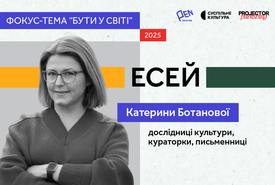 Катерина Ботанова — дослідниця культури, кураторка, письменниця. В есеї, написаному в межах фокус-теми PEN Ukraine 2025 "Бути у світі", вона міркує про те, як війна впливає на словник та якими словами варто говорити про мир.