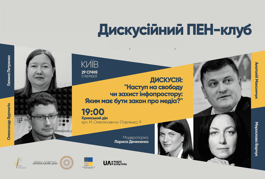 29 січня Український ПЕН проведе в Кримському домі у Києві дискусію – "Наступ на свободу чи захист інфопростору: Яким має бути закон про медіа?"