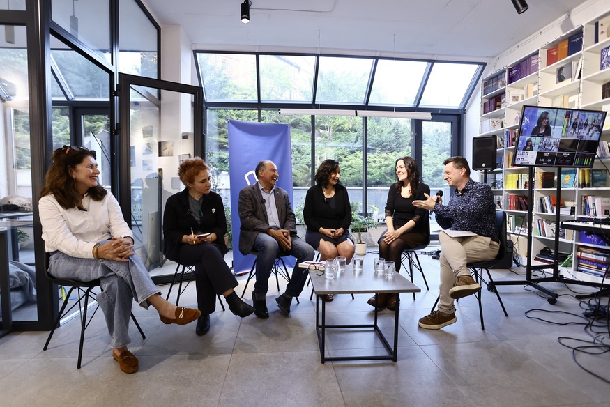 Також Карлес Торнер, Хатуна Цхададзе, Кароль Месробян та Фроуке Зантінґ зустрілися із фотожурналістом Стасом Козлюком, письменником Мирославом Лаюком і заступником генерального директора Українського інституту Алімом Алієвим. Зустрічі, на яких обговорювалась роль авторів у час війни, модерувала письменниця та радіоведуча Олена Гусейнова.