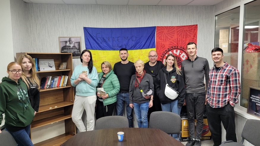 Також ми започаткували в Краматорську нову ініціативу – буккросинг для військових та наповнили першу поличку найкращими сучасними виданнями. Під час зустрічі у волонтерському центрі військові поділилися з нами своїми читацькими запитами – будемо намагатися в подальшому їх підтримувати та розвивати читання якісної українськомовної літератури в Краматорську.