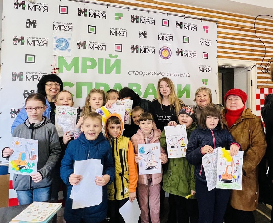 Попри близькість до фронту, в Слов'янську залишається багато дітей. Наша письменниця Victoria Amelina провела творчий літературний майстер-клас для юних читачів і залишила свої дитячі книжки для місцевого фонду.