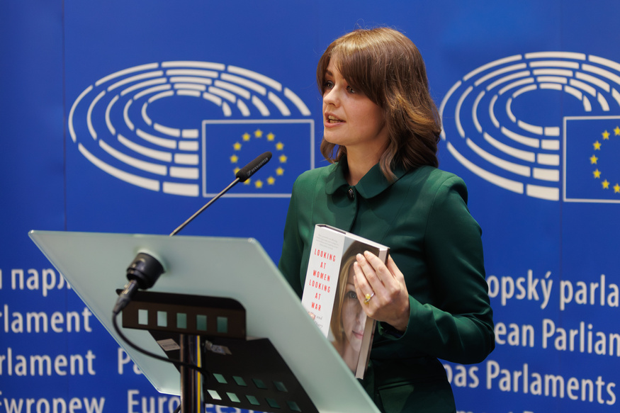 Президентка Європейського парламенту Роберта Метцола відвідала простір, подякувала присутнім та отримала у подарунок англійську версію книги Вікторії "Looking at Women, Looking at war". Нагадаємо, що протягом лютого-березня продажі книжки розпочались у низці країн: Великій Британії, США, Франції, Швеції, Італії, Німеччині.