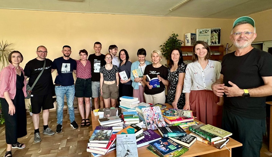 Також завітали у прифронтові Вільнянськ, Тернувате та Новомиколаївку. В усіх містечках продовжують працювати і об'єднувати свої громади бібліотеки. Від PEN Ukraine та наших партнерів привезли їм нові книжки українською та англійською мовами.