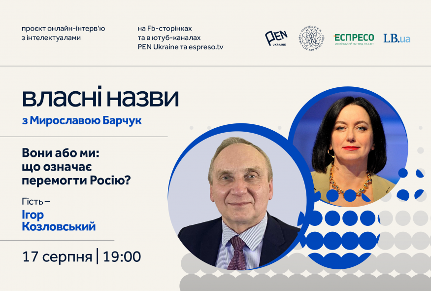 17 серпня о 19:00 відбудеться дев’ятий ефір онлайн-проєкту Мирослави Барчук "Власні назви", гостем якого стане Ігор Козловський, кандидат історичних наук, релігієзнавець.