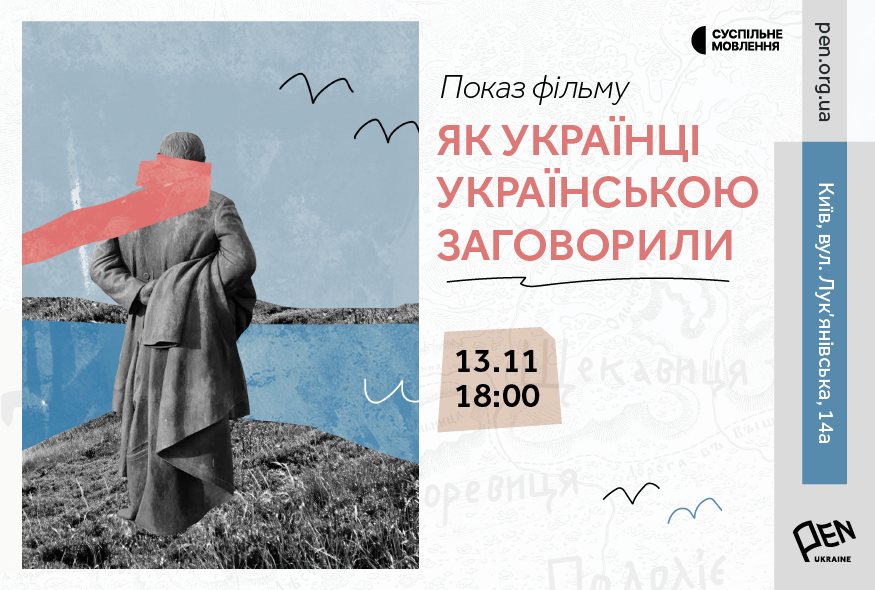 13 листопада о 18:00 у просторі PEN Ukraine відбудеться показ документального фільму "Як українці українською заговорили" від Суспільного Мовлення.