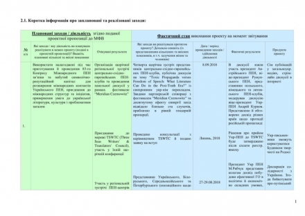 ЗВІТ про виконання проекту №51883 “Від міжнародного конґресу до сталої міжкультурної взаємодії”, реалізованого громадською організацією "Український осередок Міжнародного ПЕН-клубу"